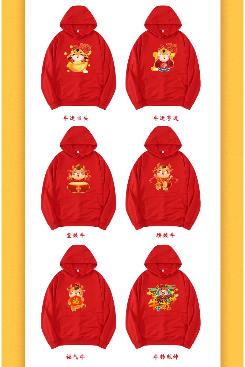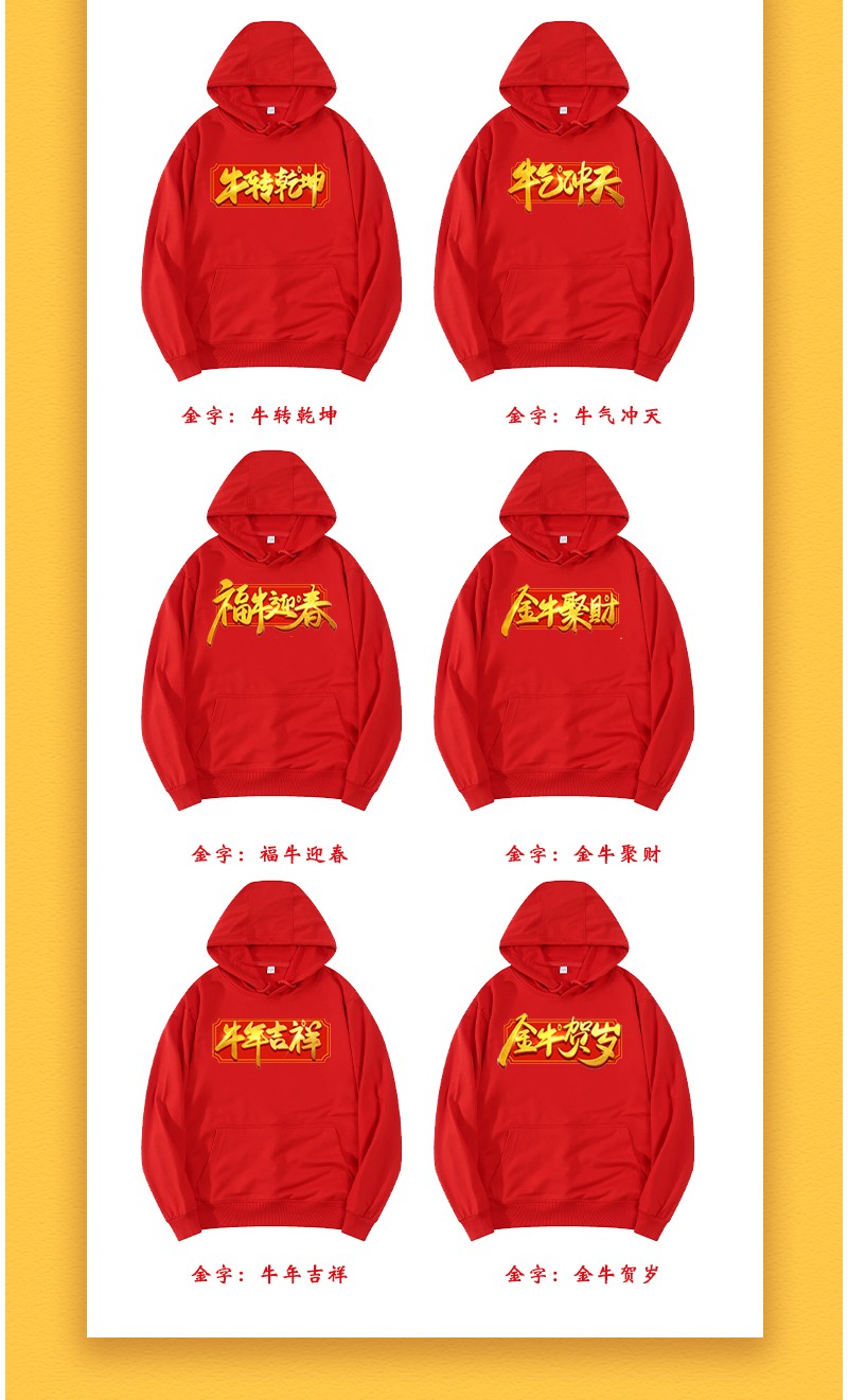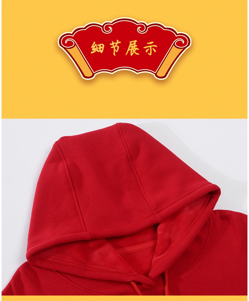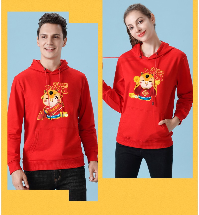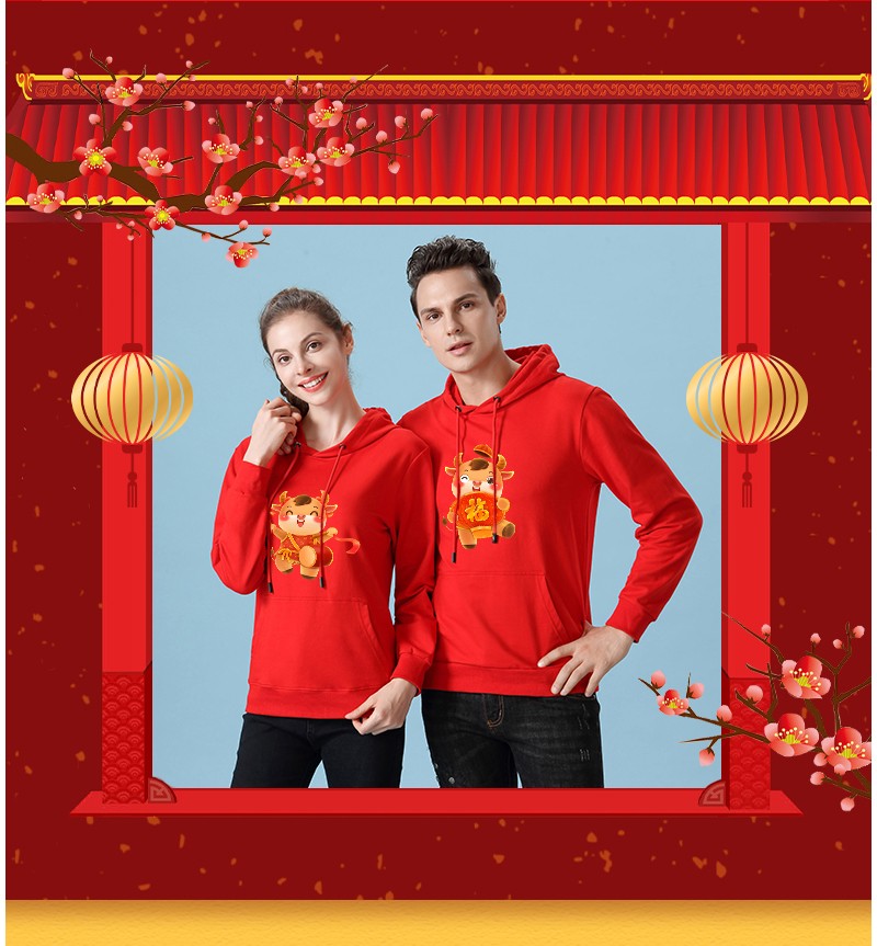 YDWY201212男女同款2021生肖牛年加絨連帽新年紅色衛(wèi)衣定制本命年元旦公司年會印logo