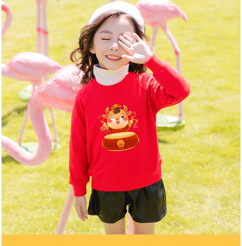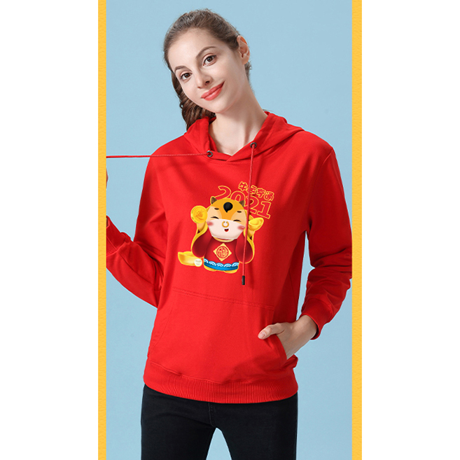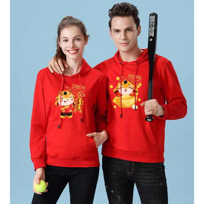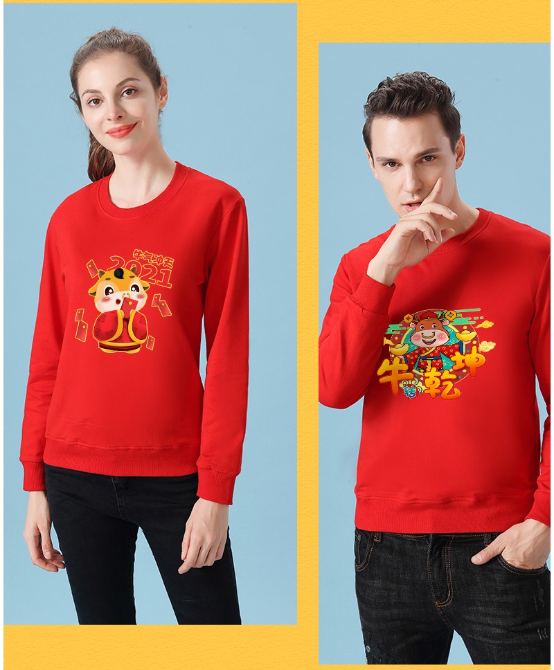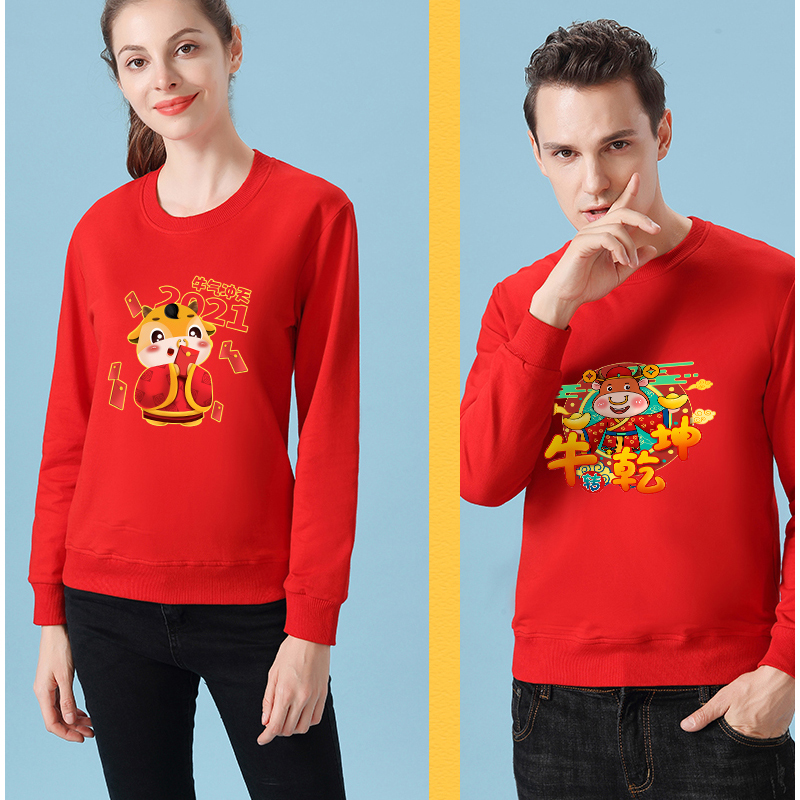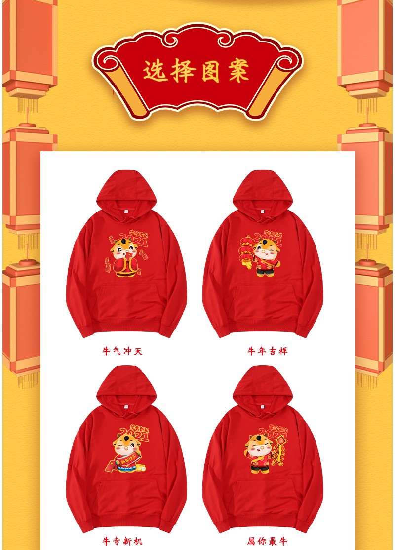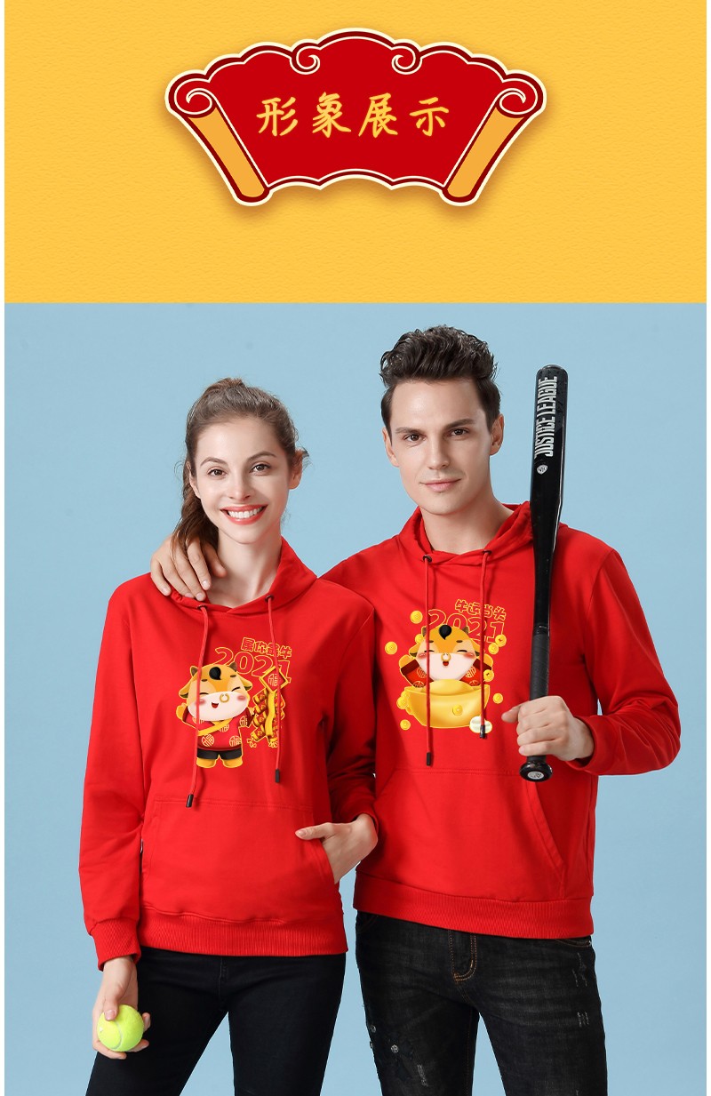 YDWY201212男女同款2021生肖牛年加絨連帽新年紅色衛(wèi)衣定制本命年元旦公司年會印logo
