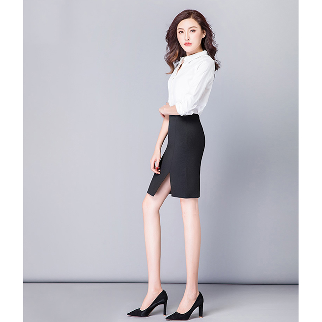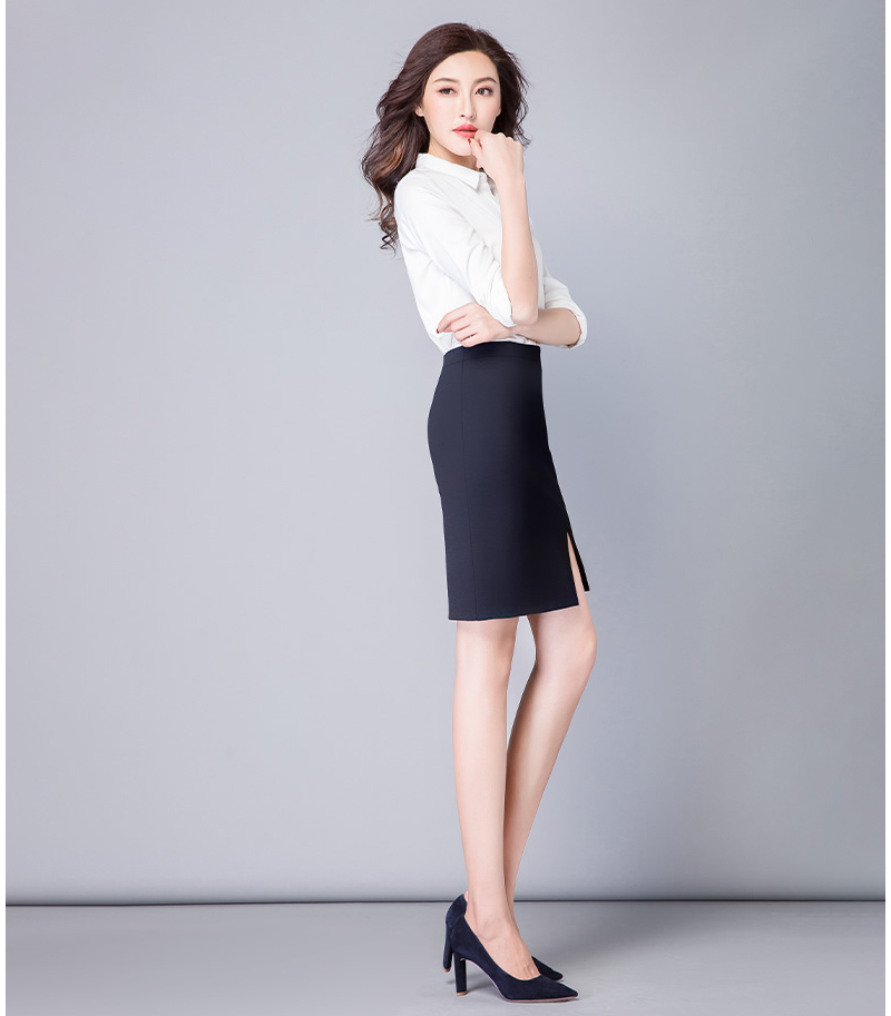 YDXQ201206職業(yè)西裙女高腰半身裙工作裝包臀一步裙OL短裙職業(yè)西裙定做廣州職業(yè)裝定制廠家