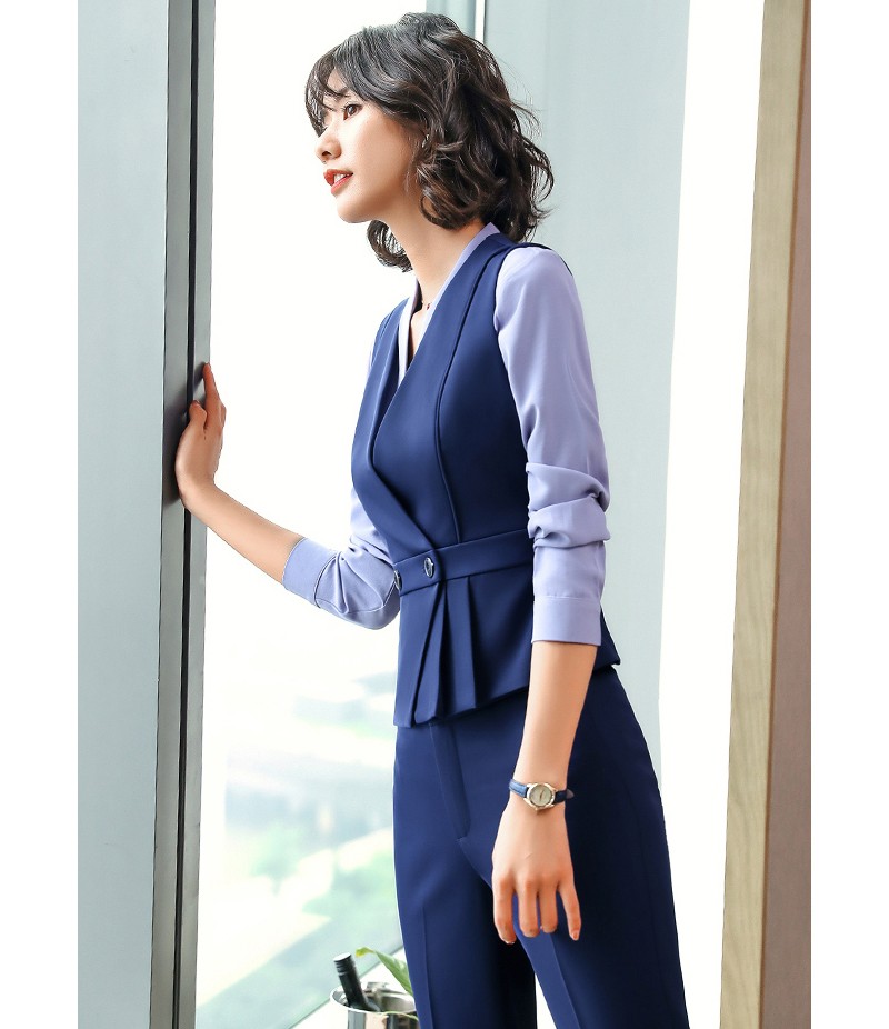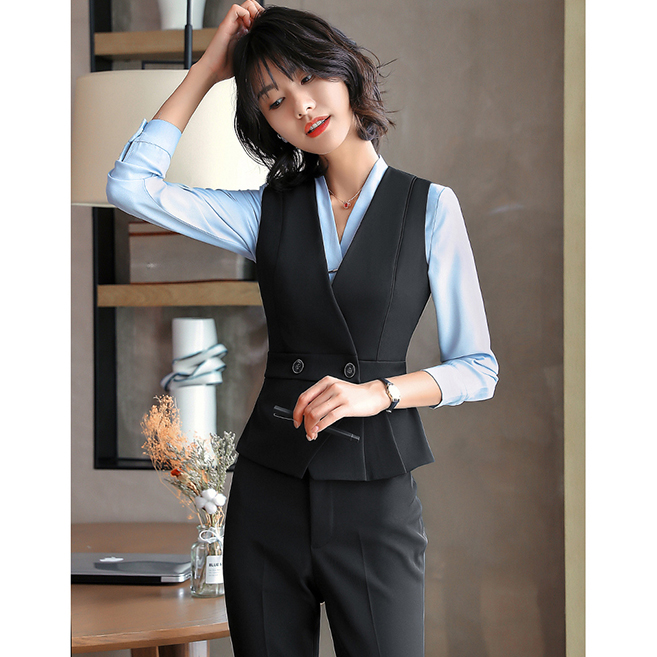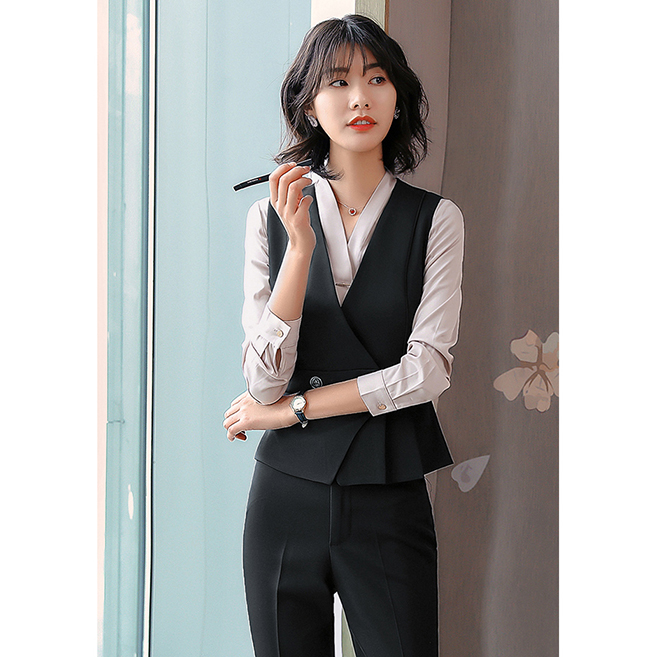 YDNMJ201215女款馬甲職業(yè)裝女套裝氣質(zhì)西服馬甲女款工裝三件套2020新款工作服面試正裝定制