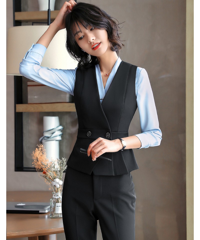 YDNMJ201209女款馬甲職業(yè)裝女套裝氣質(zhì)西服馬甲女款工裝三件套2020新款工作服面試正裝定制
