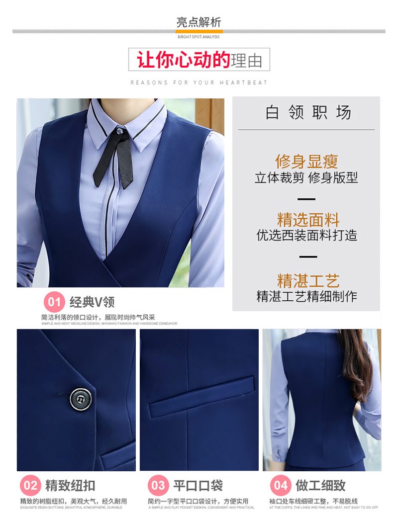 • YDNMJ201215女款馬甲職業(yè)裝女套裝氣質(zhì)西服馬甲女款工裝三件套2020新款工作服面試正裝定制
